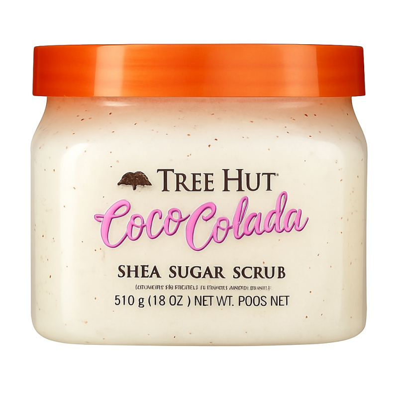 Tree Hut Coco Colada Shea Sugar Scrub buffs away dead skin with natural sugar and coconut shell powder. Infused with shea butter, coconut, and lime, this tropical scrub leaves skin smooth, glowing, and deliciously scented.